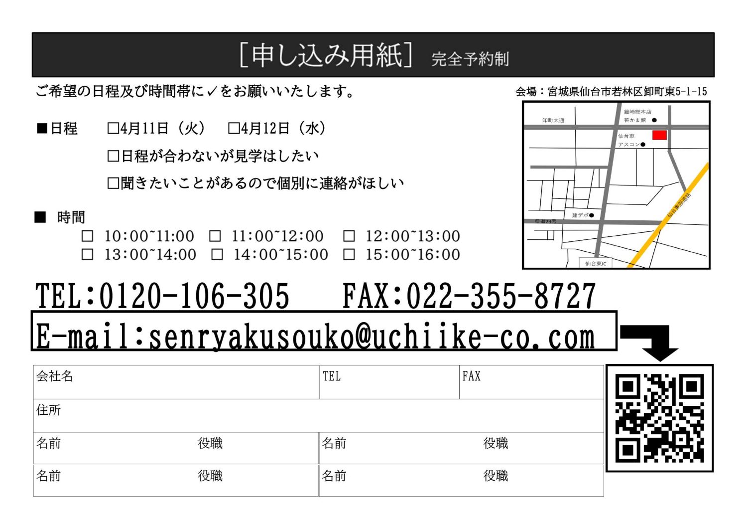 2023.04.06 お知らせ倉庫ニュース 仙台で戦略倉庫完成見学会を実施します 〜完全予約制〜 日程 4/11(火)〜4/12(水) 時間 10時〜16時 会場 宮城県仙台市若林区卸町東5-1-15 参加無料です! 倉庫・工場・店舗・事務所等 ご検討中の方! コストの面などで悩まれている方! 完成見学会にて是非ご相談下さい 皆様のお越しをお待ちしております ご連絡は 株式会社 内池建設 TEL:0120-106-305 FAX:022-355-8727 E-mail:senryakusouko@uchiike-co.com まで