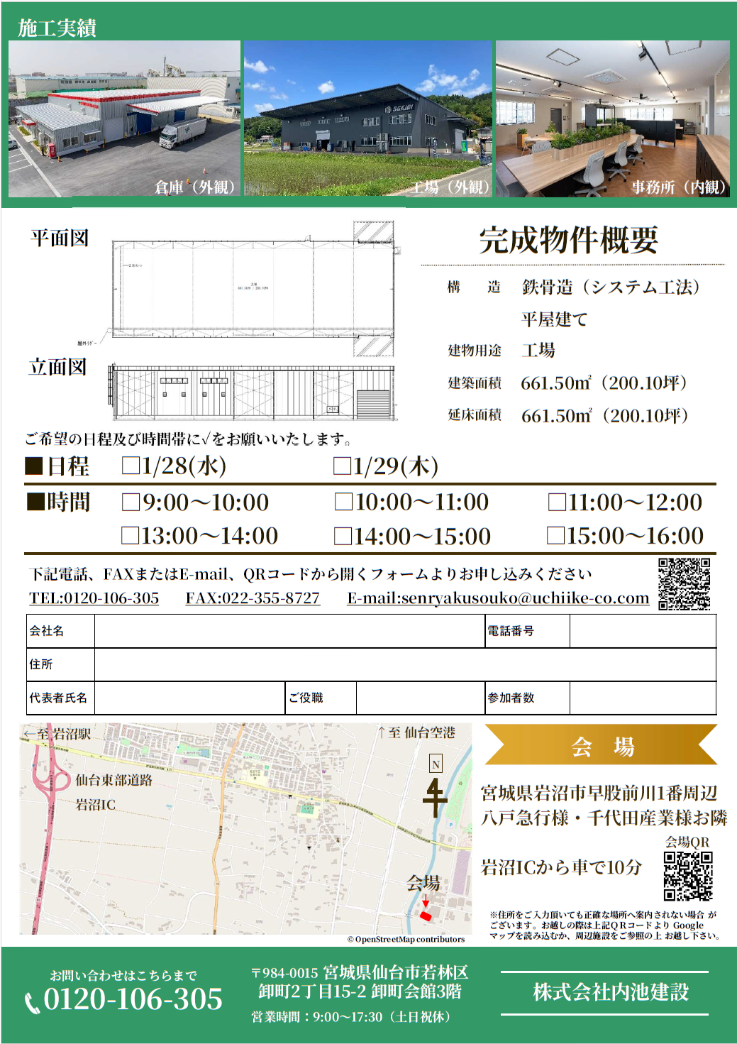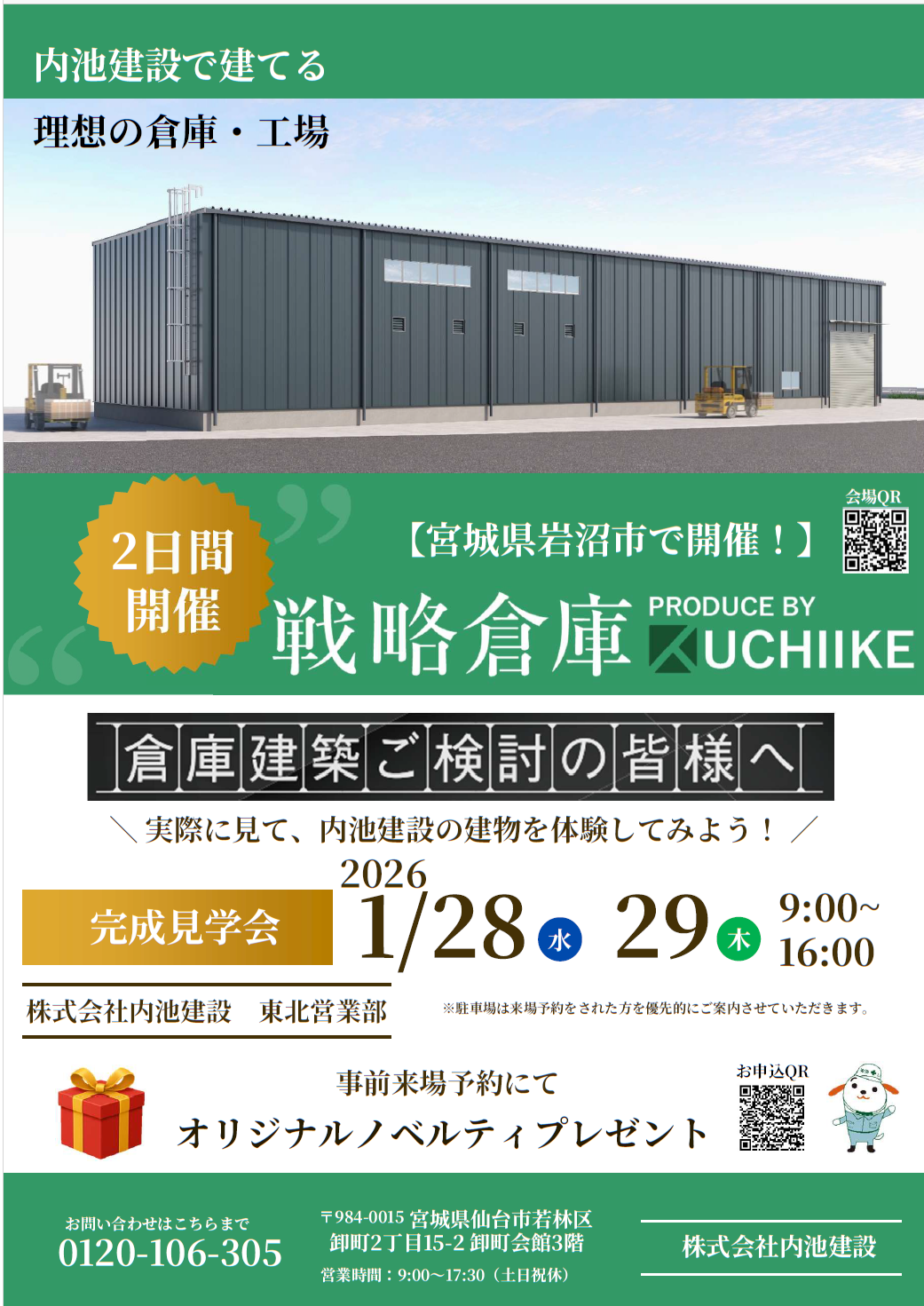 宮城県岩沼市にて戦略倉庫の完成見学会を開催いたします!!